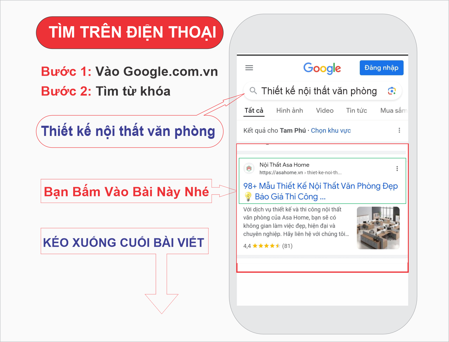 Tại kết quả trang 1 ... của kết quả hiển thị, click vào Website asahome.vn/*****